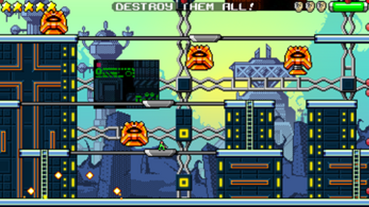 Saethwr platfform sy'n dod â gemau'r 90au i'ch wyneb! Saethwch ac insta-melee eich ffordd trwy luoedd o filwyr estron, robotiaid, bosiau a llawer mwy. Ymladd ar droed, mewn awyren ymladd neu mewn awyren fomio. Herio'r bosiau a sicrhewch na fydd y bygythiad estron yn bygwth y Ddaear byth eto!